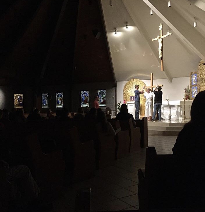 I could spend hours writing about the beauty and freedom that the Lord was breathing into my heart over the course of that penance service, but I’ll spare you the snotty details (y’all, I cried so much that night). I will share that all of us teens had been given a small piece of paper at the beginning of Saturday night. We were invited to write down anything that we wanted to surrender to the Lord, and to put it on a nail on the Cross that had been carried into the sanctuary. Those instructions came somewhat later in the evening though. So before I learned the actual function for the paper, it had been used first as a Kleenex and then as a list of sins to bring to Confession. And what a gift, because I was able to literally see my snot and tears and sin nailed to the Cross, as well as all the burdens I had been carrying for so long. That list of burdens was long, just as it is for every human. But I definitively remember writing, “Hannah and Angel” on that tiny piece of paper. It’s the only thing I journaled about for the entire night.